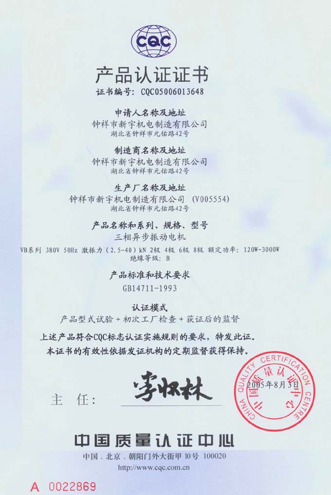 CQC產(chǎn)品認(rèn)證證書