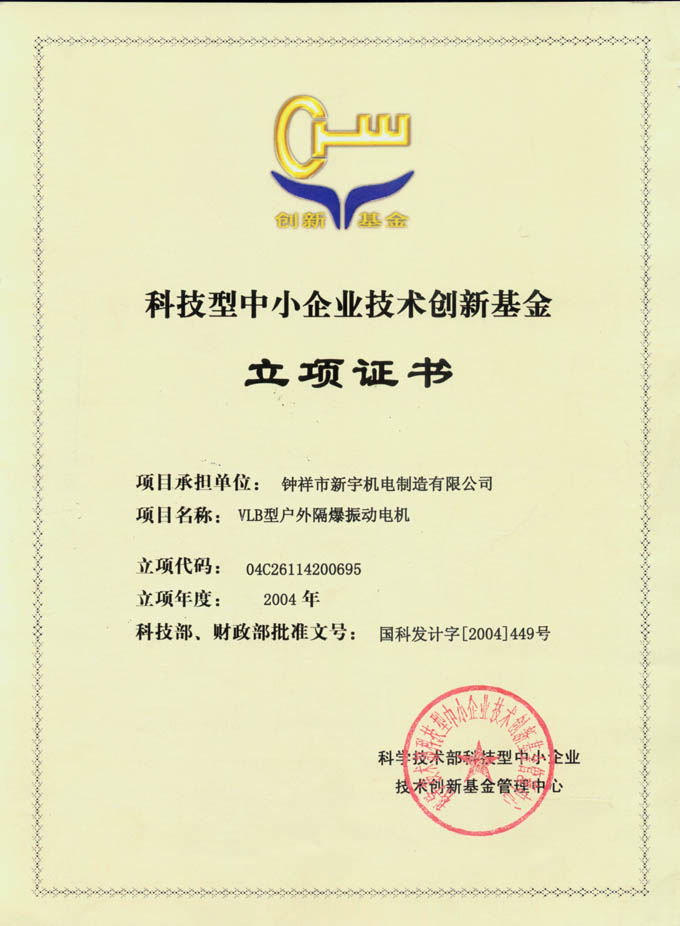 科技型中小企業(yè)技術(shù)創(chuàng)新基金立項(xiàng)證書